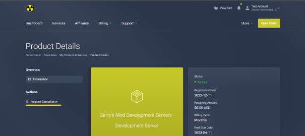 Step 1: Navigate to the “Services” page of the Billing Panel
