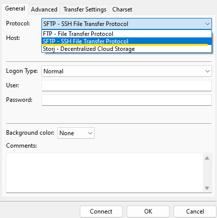 Under the Protocol section, select SFTP